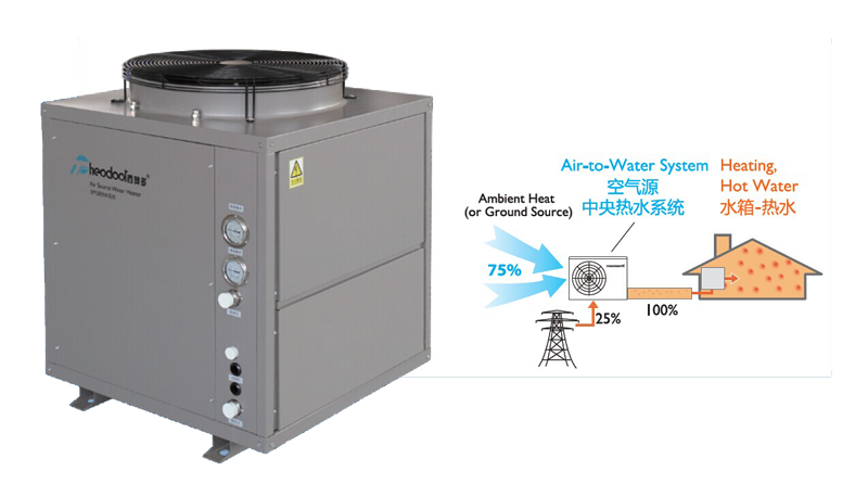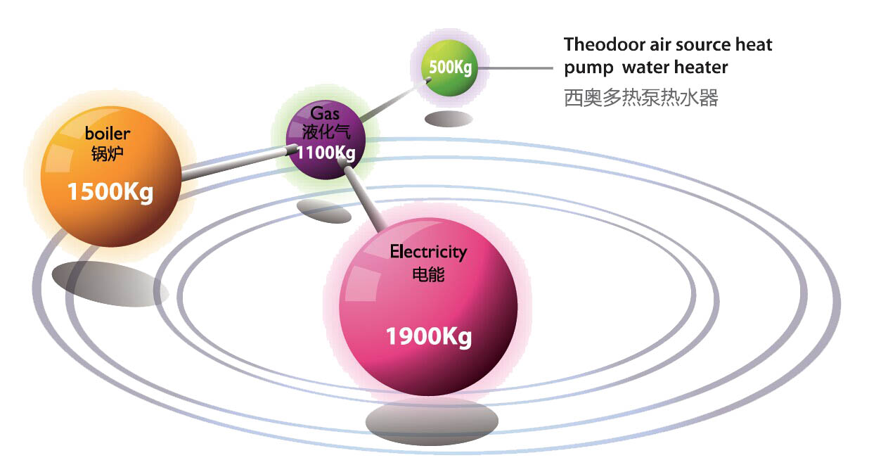 According to the study indicated that, for each unit of electricity ,the consumption of fossil material to about 0.67Kg of carbon dioxide release. China’s average temperature and a five-person households use hot water sa an example, one-year results of the air to water heater, carbon dioxide emissions can be reduced to 500kg, And save a few thousand dollars per year of liquefied gas and electricity costs .
