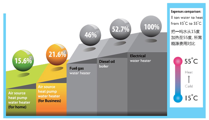 Expenses comparison- 1 ton water to heat from 15℃ to 55℃