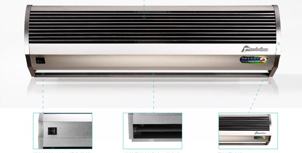 Theodoor air curtain can be combined with weak or strong electricity door switch, and it is more convenient and eneygy-saving.