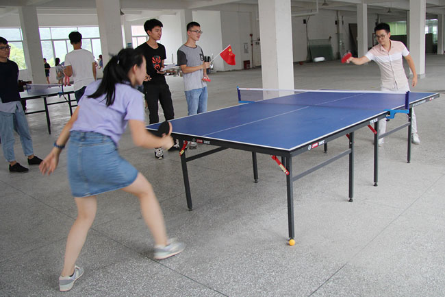 跳繩比賽與乒乓球比賽同時(shí)進(jìn)行,部分員工積極地報(bào)名了兩個(gè)比賽項(xiàng)目。