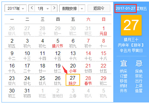 沒錯~沒錯,你沒看錯!2017年的除夕是1月27日,離春節(jié)放假剩下一個多月!假期各種腐各種買買買……掃年貨的攻略你get到了嗎?