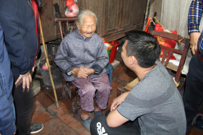 這位老奶奶105歲,兒子已離世,只有孫子,患有腿疾走路不便。看到大家,她說話有些激動。
