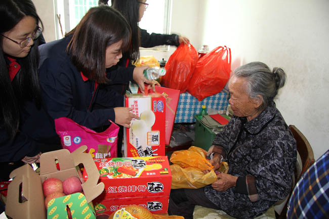 當我們道別離開,前往第四戶慰問家庭的時候,慈祥的老奶奶一直站在門口,叮囑我們常來坐坐,依依不舍地目送大家離開的背影。
