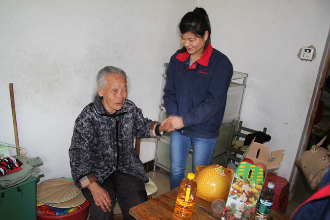 老奶奶一直握著我們的手,含著眼淚說了很多話。此情此景,很多女同事不禁流下了眼淚。臨別時候,老奶奶還為大家送上祝福,祝大家事事順利、財源廣進。