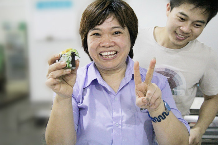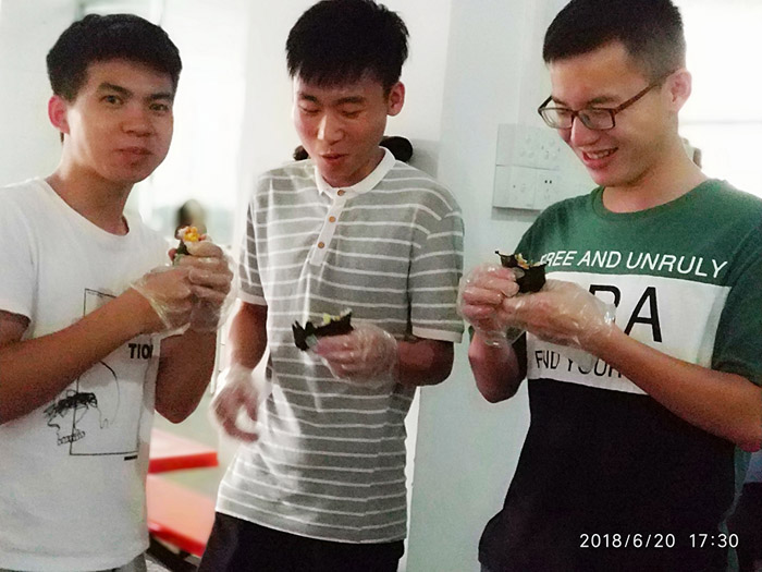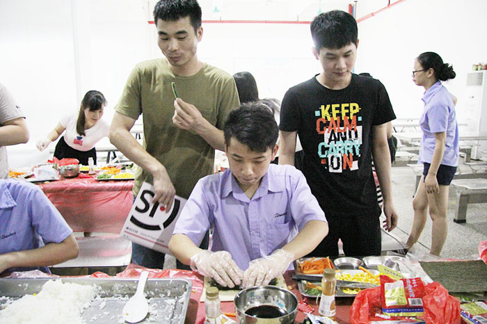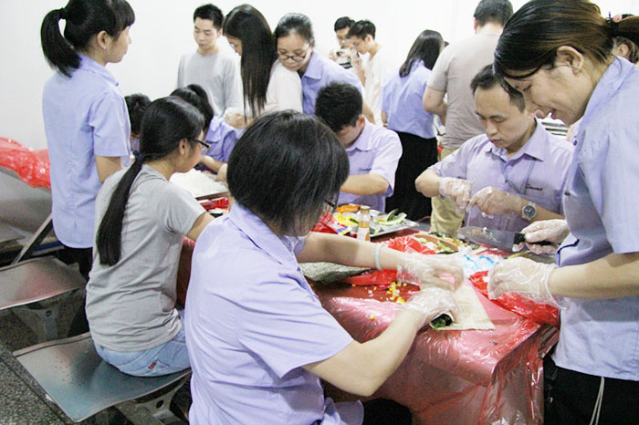 你的壽司你做主,口味自由配,品質(zhì)部、技術(shù)部等部門的同事紛紛體驗(yàn)壽司DIY的樂趣。