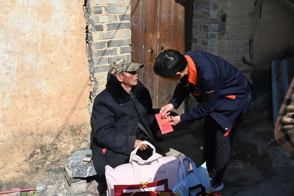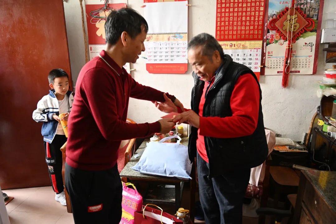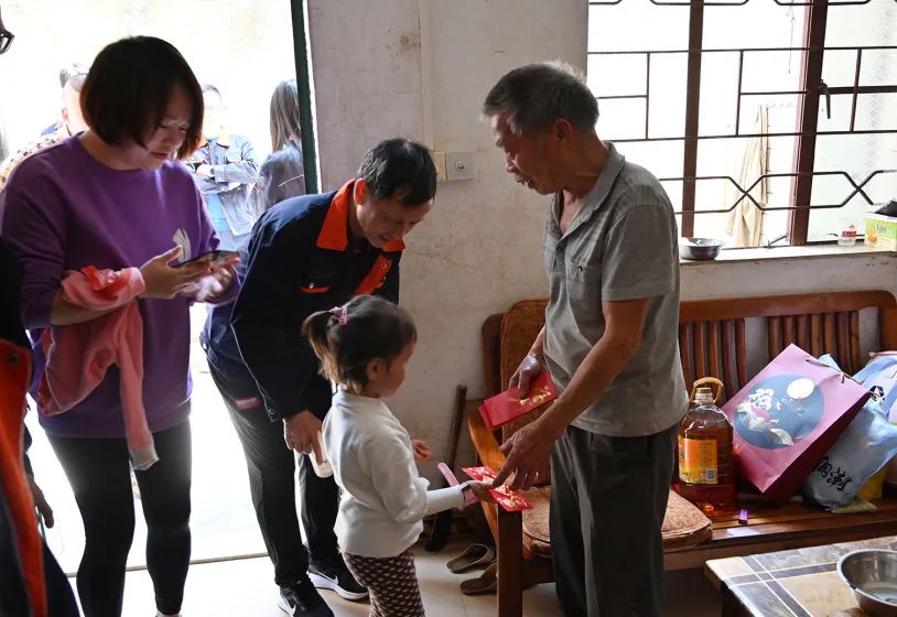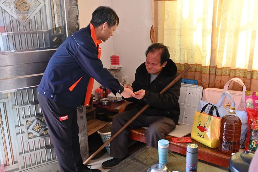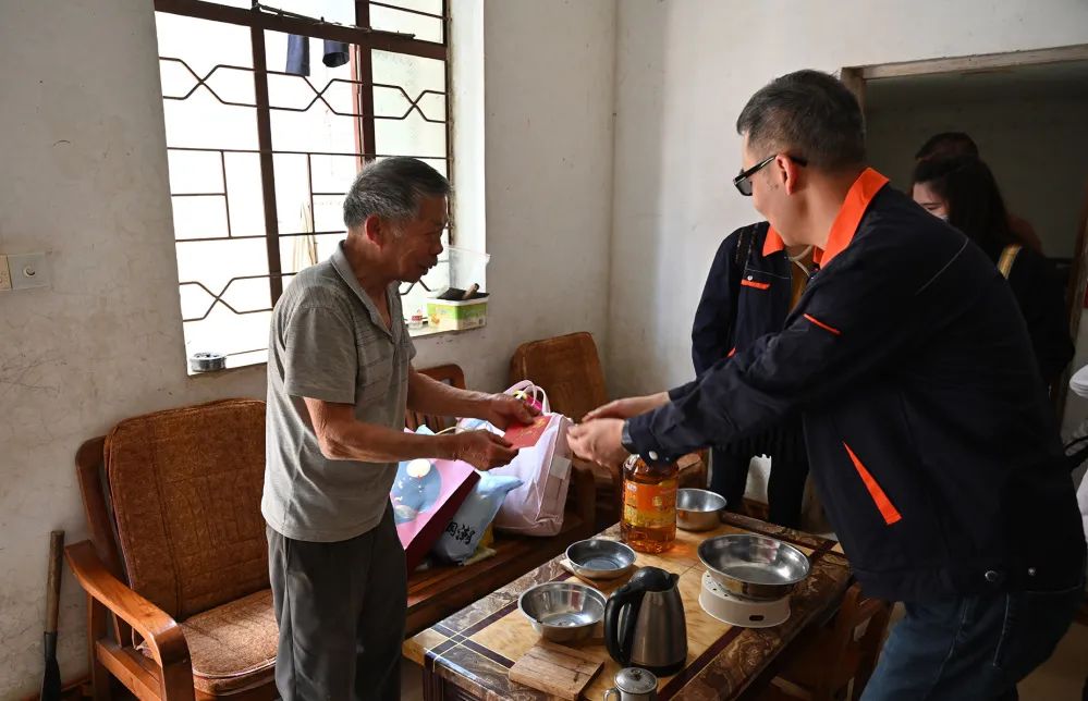 公司為老人們送上慰問金紅包,以及棉被、食用油、大米、香菇、面食等生活物資。