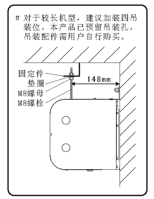 5用戶需自購(gòu)相關(guān)安裝配件,其強(qiáng)度必須能承受本產(chǎn)品重量。